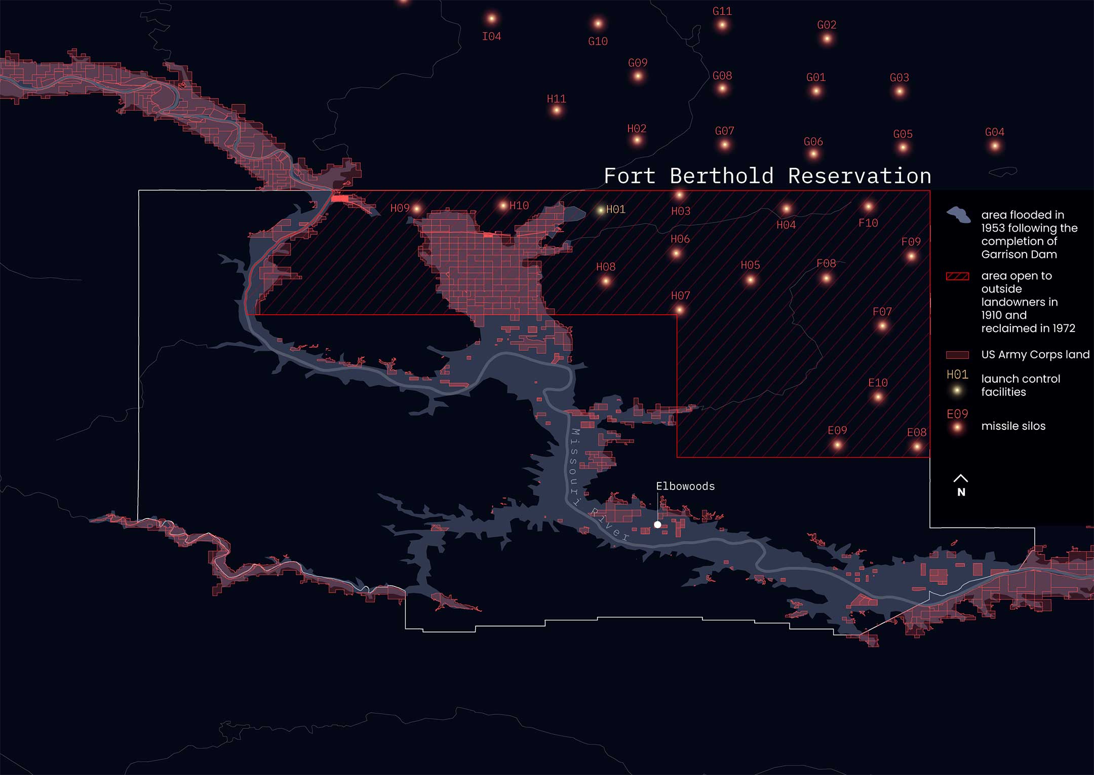 Construction of the silos occurred in the early 1960s, less than a decade after more than 80% of the Mandan, Hidatsa and Arikaras were forced to relocate following the intentional flooding of their reservation in order to complete the 1953 Garrison Dam project.